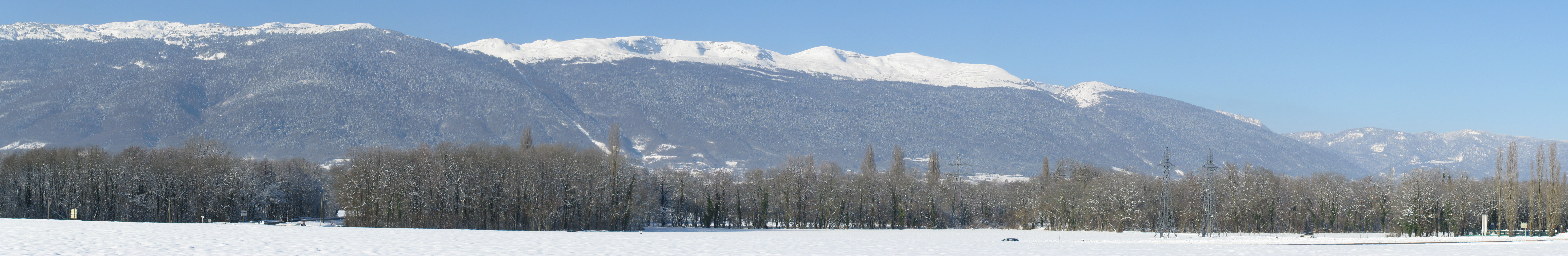 Ještě jedna panoramatická fotka, tentokrát pořízená z polní cesty spojující St. Genis a Prévessin-Moens